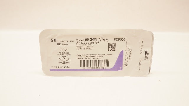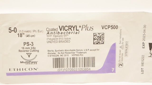 - Ethicon VCP500 5-0 VICRYL Plus, PS-3, 16mm 3/8c, 18inch