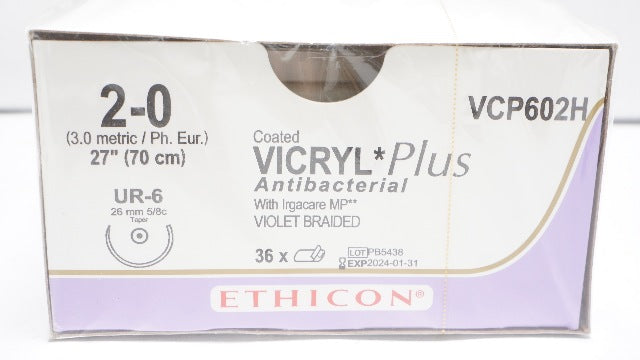 - Ethicon VCP602H 2-0 Coated VICRYL Plus 27in. Stre., UR-6 26mm (x) -Box of 36