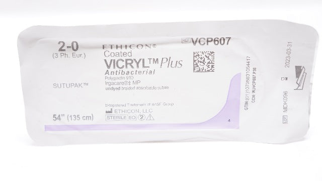 - Ethicon VCP607 2-0 Coated Vicryl Plus Antibacterial Stre, 54inch (x)