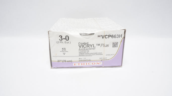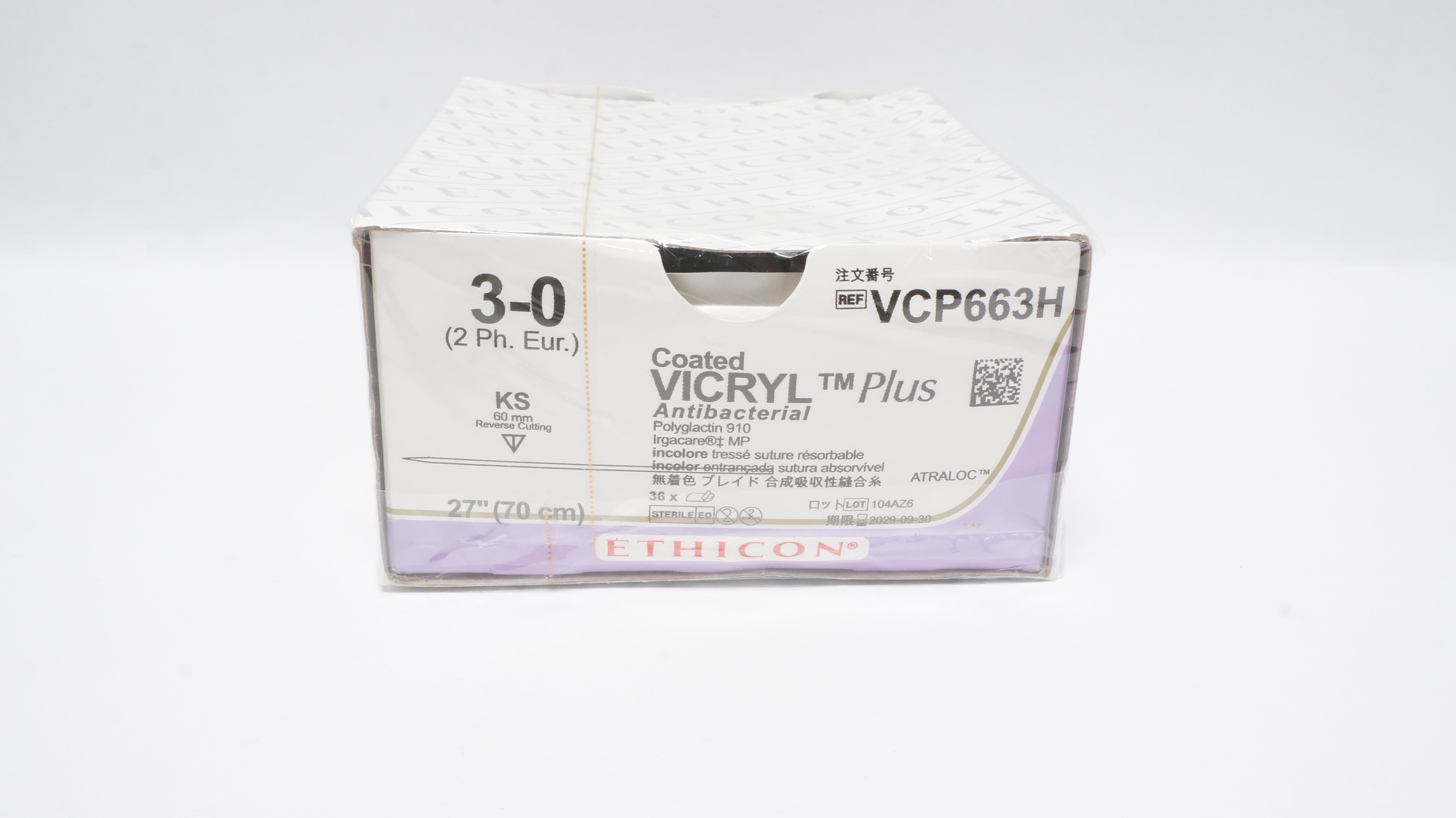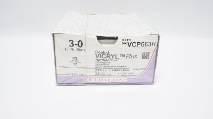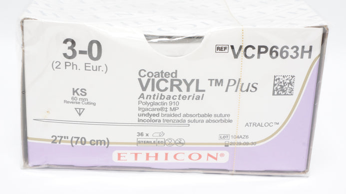- Ethicon VCP663H 3-0 VICRYL Plus Polyglactin Stre KS 60mm 27 inch- Box of 36