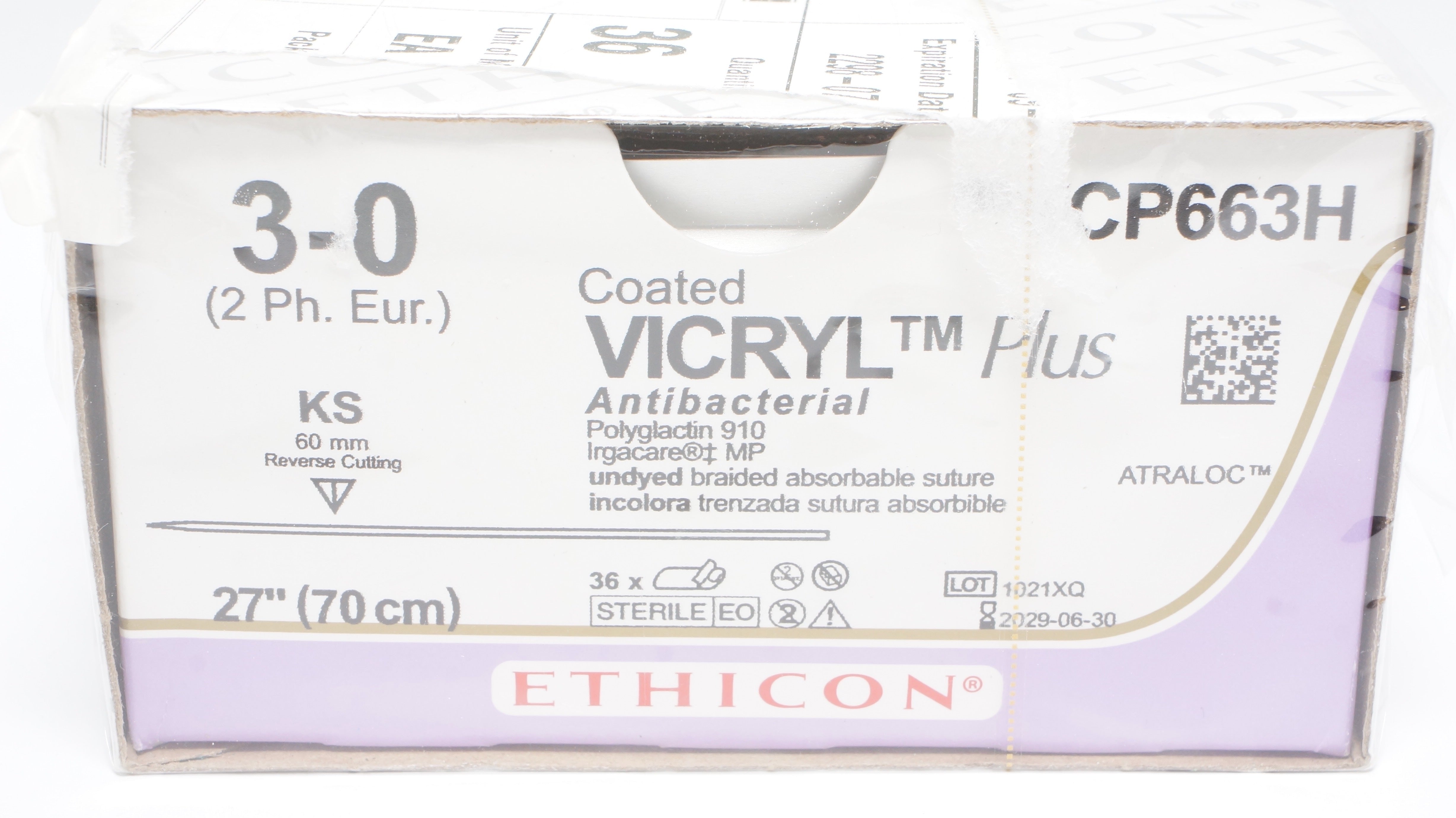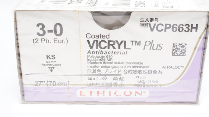 - Ethicon VCP663H 3-0 VICRYL Plus Polyglactin Stre KS 60mm 27 inch- Box of 36