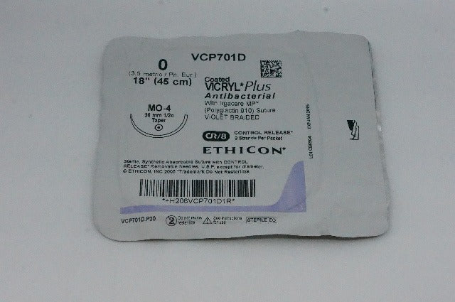 - Ethicon VCP701D 0 VICRYL Plus, MO-4, 36mm 1/2c Taper, 18inch (x)