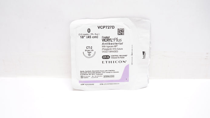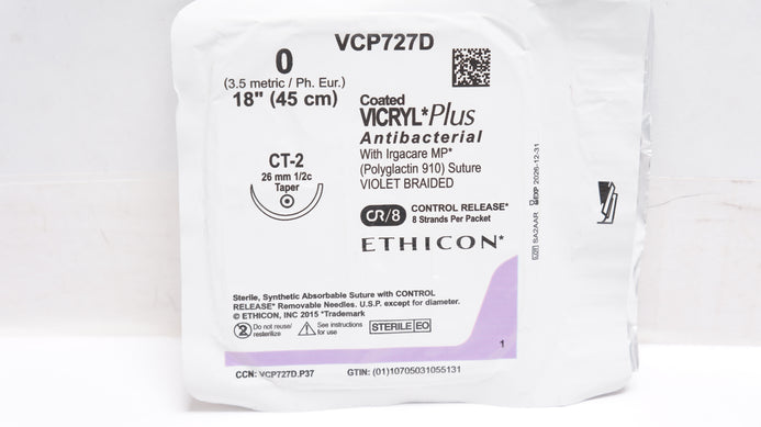 - Ethicon VCP727D 0 Coated VICRYL Plus CT-2 26mm 1/2c Taper, 18inch