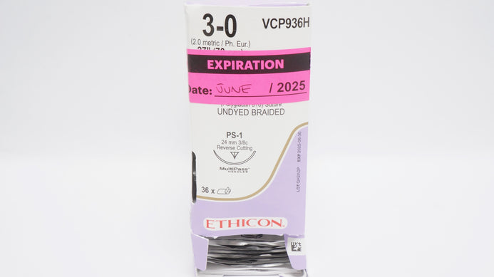 - Ethicon VCP936H 3-0 VICRYL PS-1 24mm 3/8c Reverse Cutting 18inch (x) - Box of 35