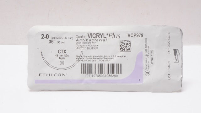 - Ethicon VCP979 2-0 VICRYL Plus CTX 48mm 1/2c 3Taper 36inch (x)