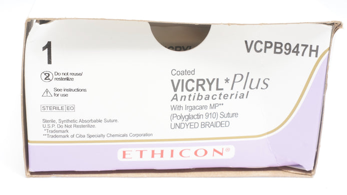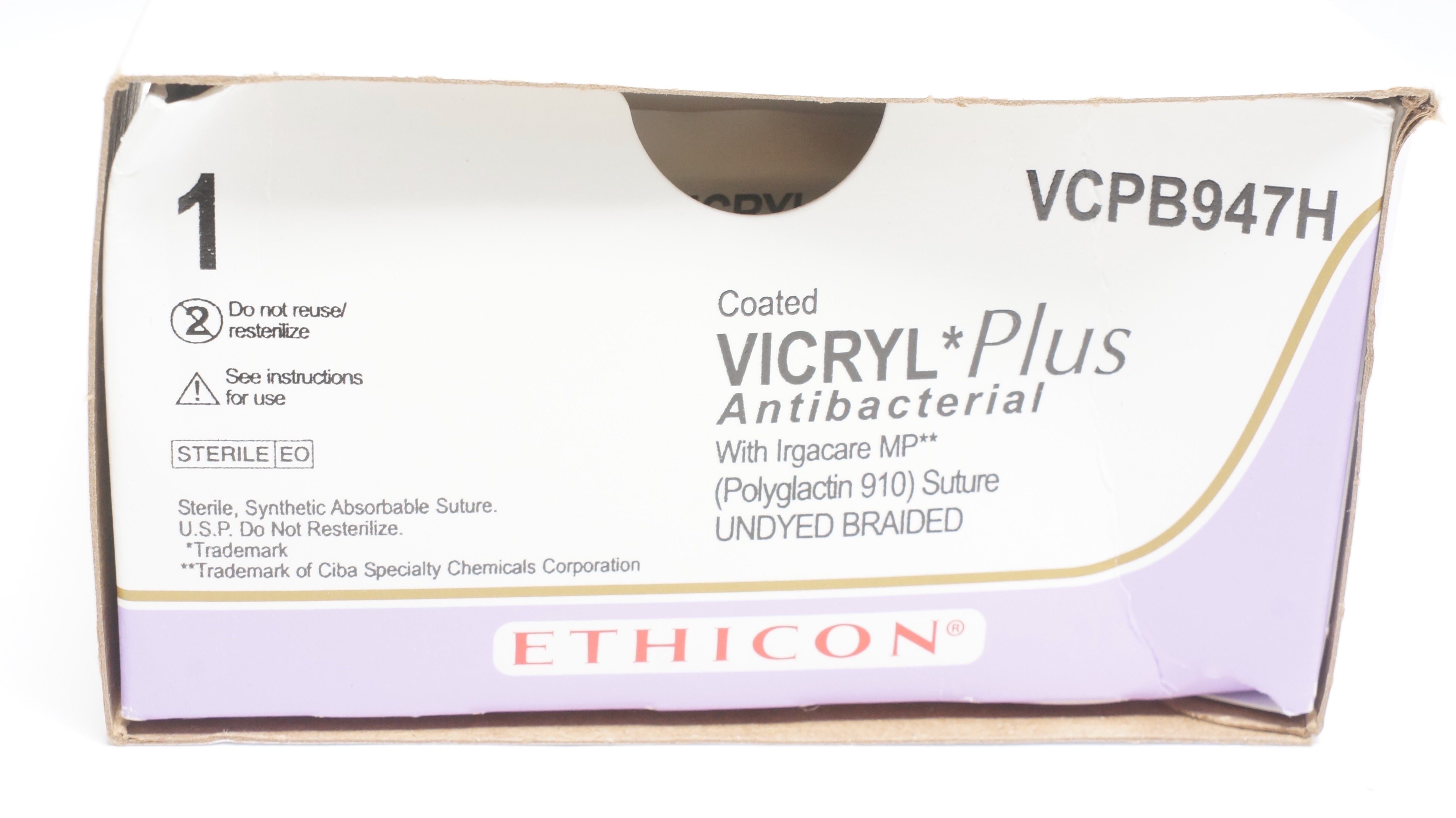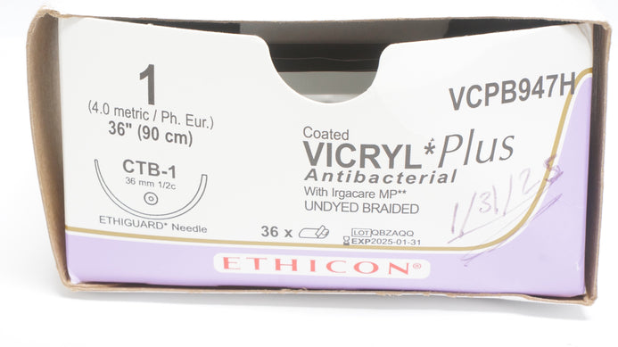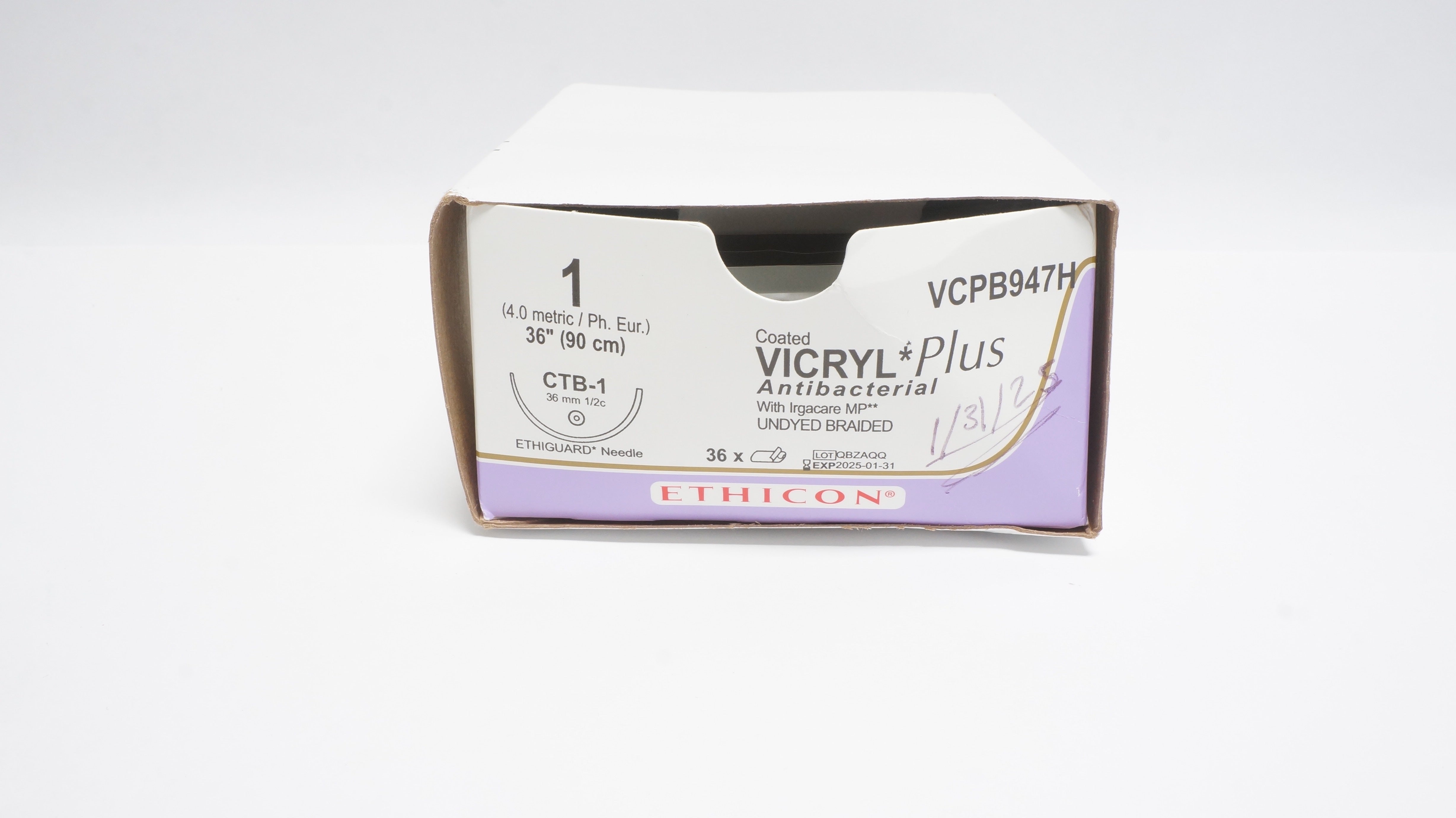 - Ethicon VCPB947H 1 Coated Vicryl+ Antibacterial Stre. CTB-1 36mm - Box of 24 (x)