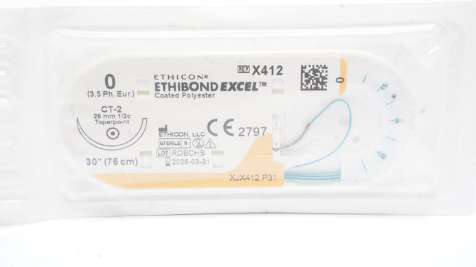 - Ethicon X412 0 ETHIBOND EXCEL Polyester Stre CT-2 26mm 1/2c Taperpoint, 30inch