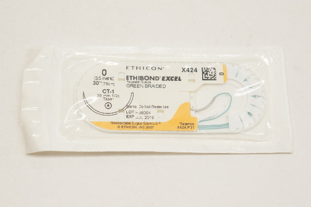 - Ethicon X424 0 ETHIBOND EXCEL, CT-1, 36mm 1/2c Taper, 30inch (x)