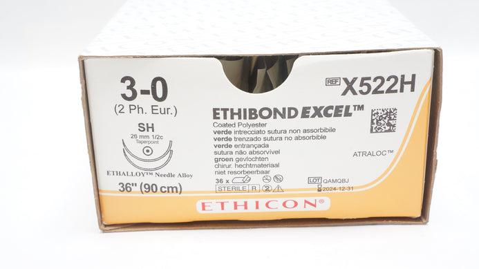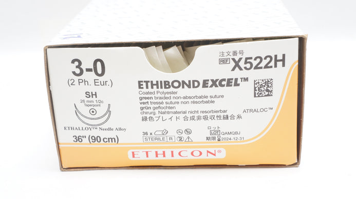 - Ethicon X522H 3-0 Ethibond Excel, SH, 26mm 1/2c Taper, 36inch (x) - Box of 21
