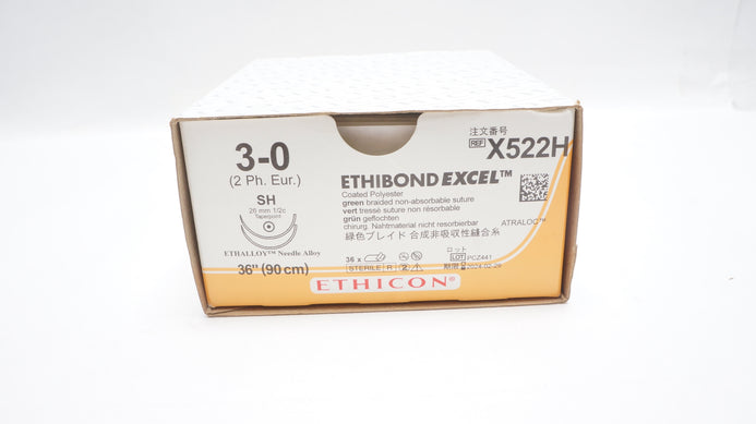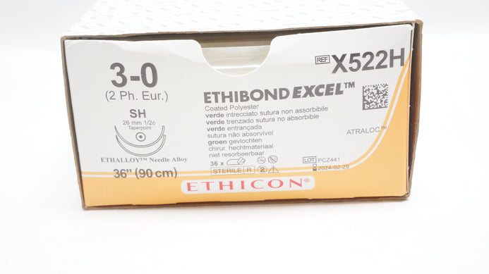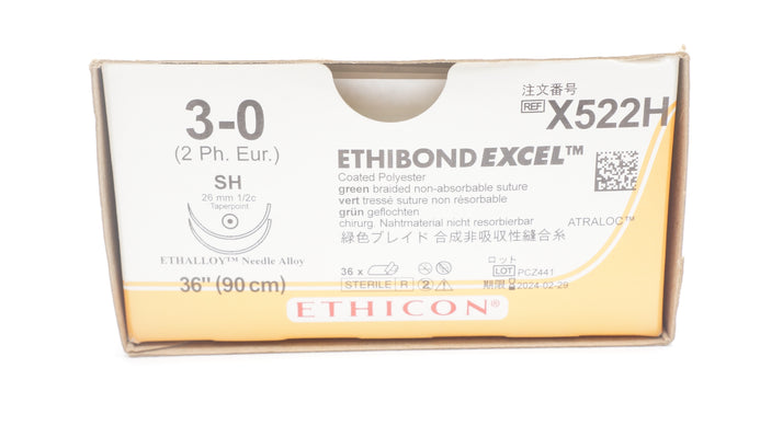 - Ethicon X522H 3-0 Ethibond Excel, SH, 26mm 1/2c Taper, 36inch (x) - Box of 36