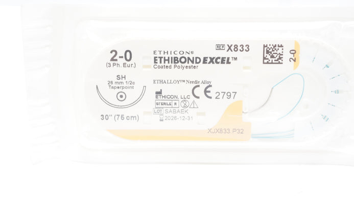 - Ethicon X833 2-0 ETHIBOND EXCEL Stre SH 26mm 1/2c Taperpoint, 30inch (x)
