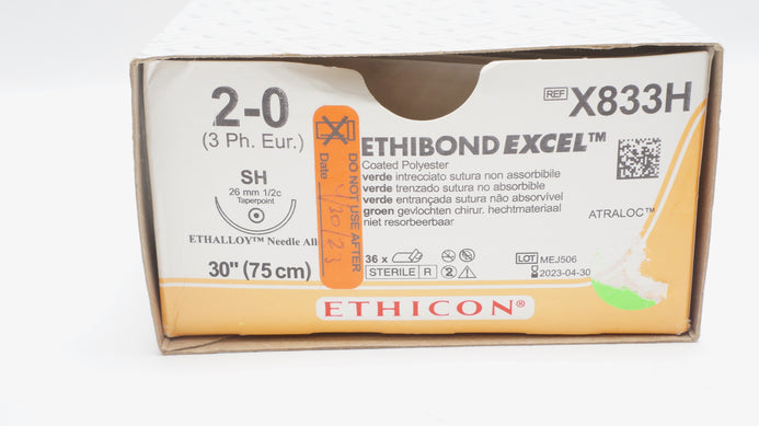 - Ethicon X833H 2-0 ETHIBOND EXCEL, SH, 26mm 1/2c Taper, 30inch (x) - Box of 22