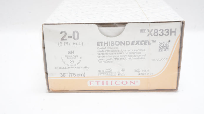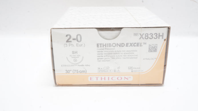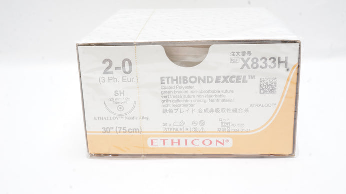 - Ethicon X833H 2-0 ETHIBOND Stre SH 26mm 1/2c Taperpoint 30inch (x) - Box of 36