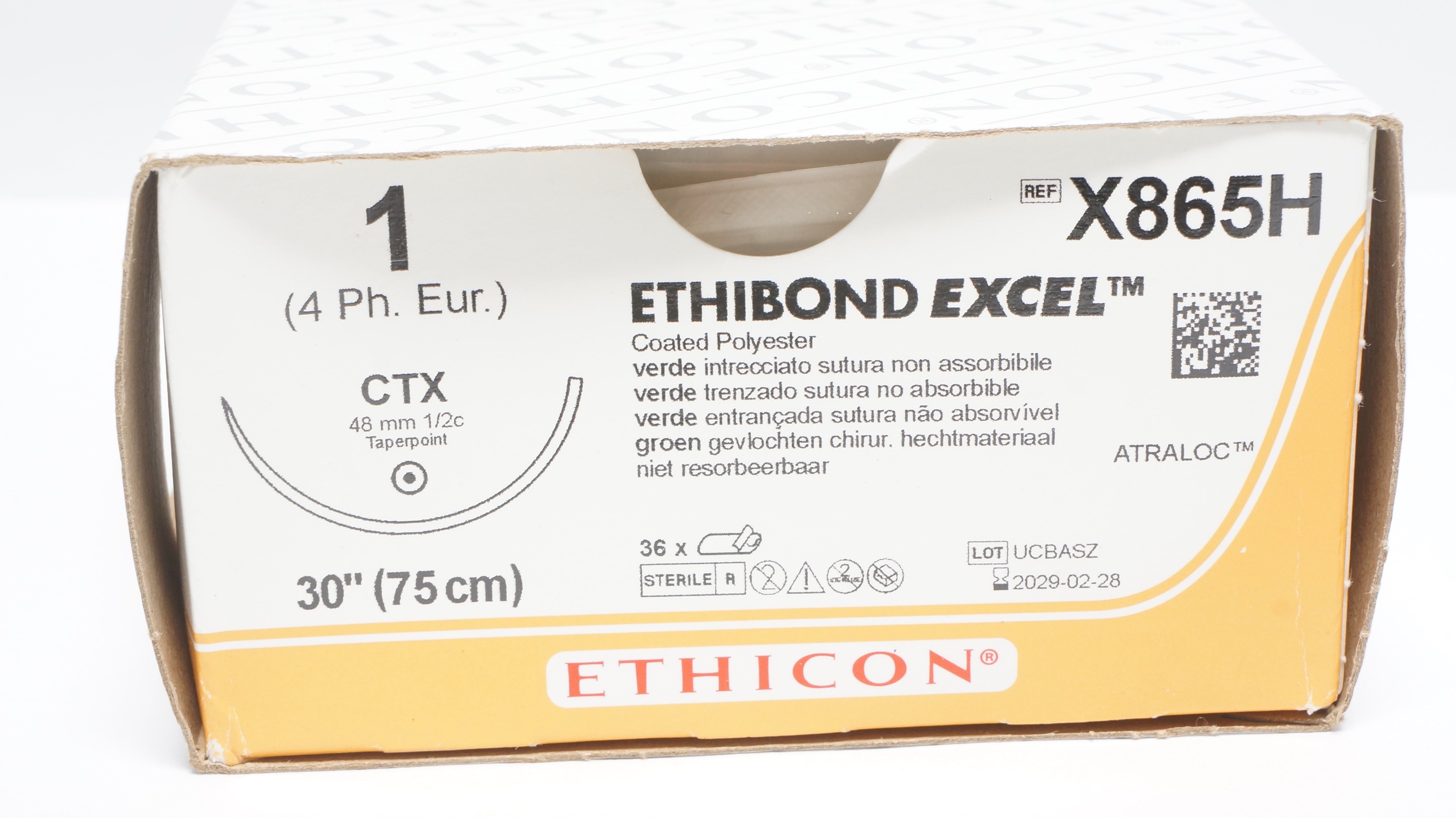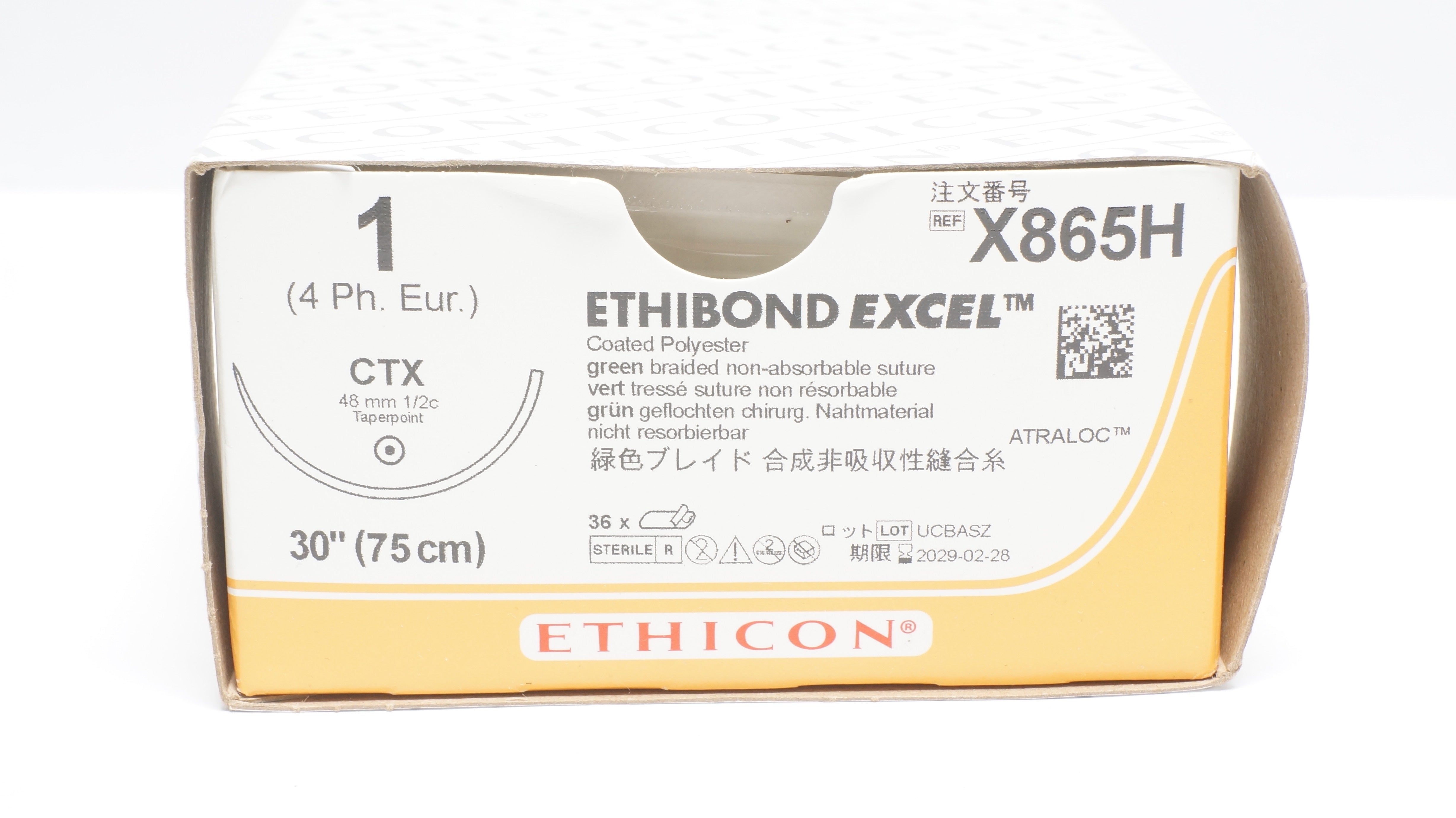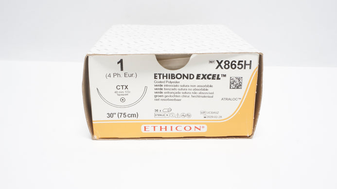 - Ethicon X865H 1 ETHIBOND EXCEL Polyester Stre. 30in., CTX 48mm Ndle - Box of 36