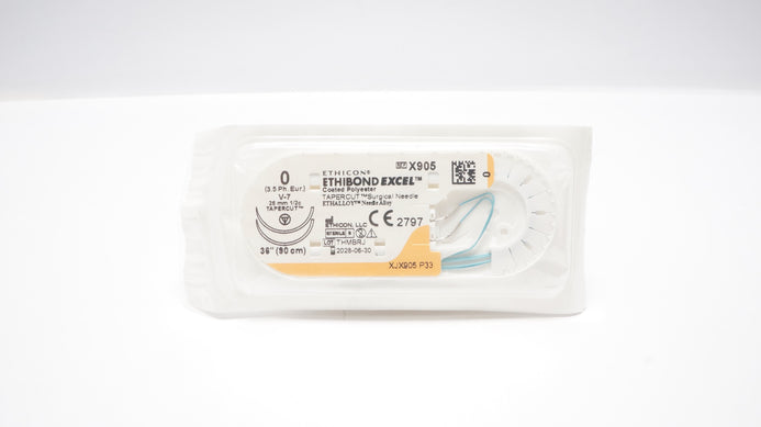 - Ethicon X905 0 Ethibond EXCEL Coated Polyester V-7 26mm 1/2c Tapercut 36In
