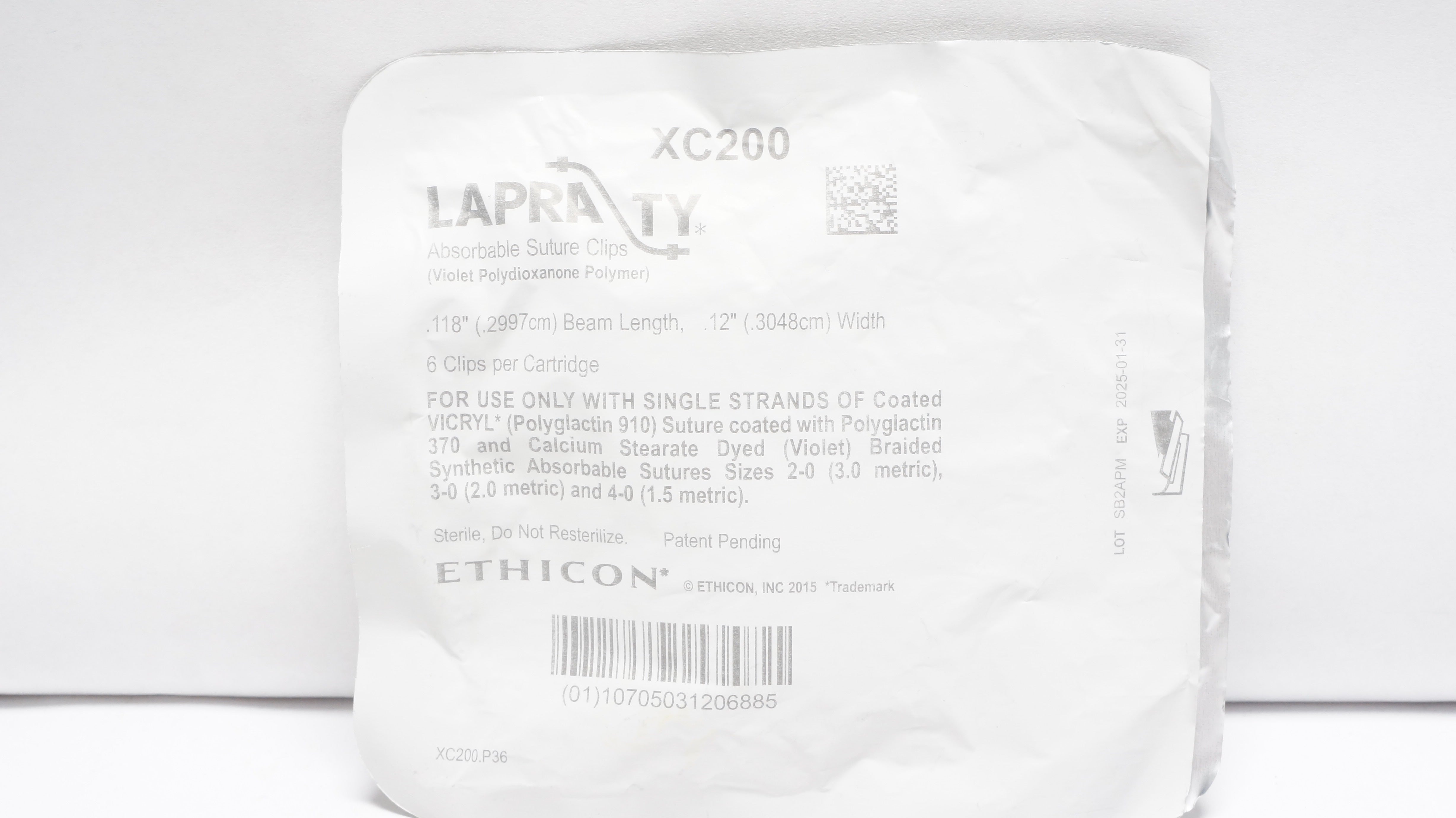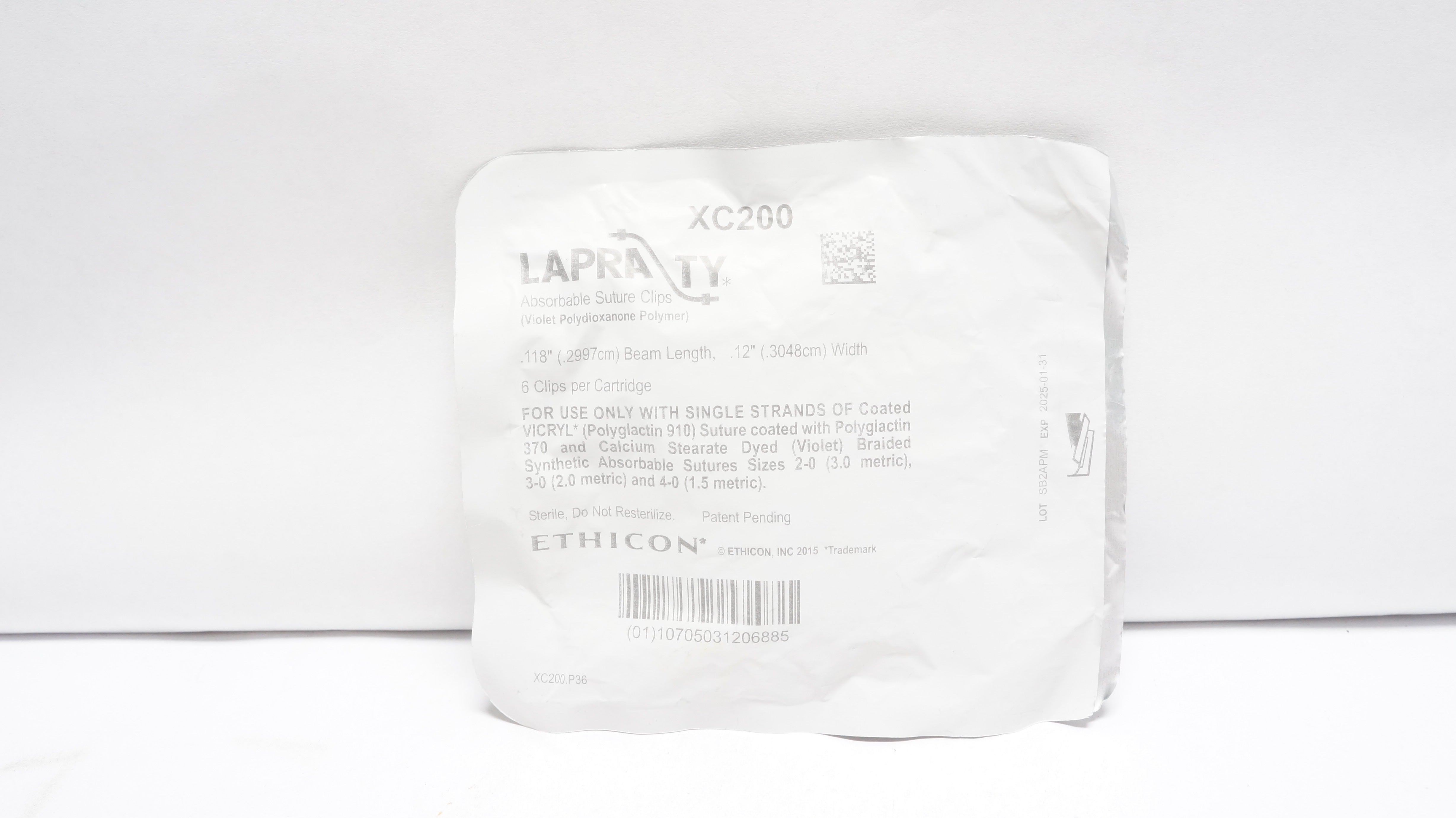 - Ethicon XC200 LAPRA TY Absorbable Stre Clips, Beam Length 12inch x 118inch (x)