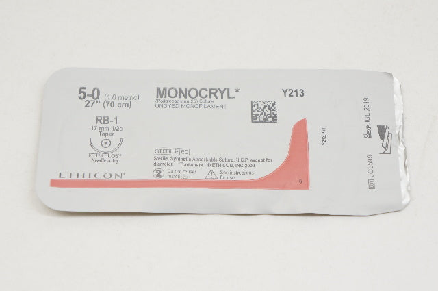 - Ethicon Y213 5-0 MONOCRYL, RB-1, 17mm 1/2c Taper, 27inch (x)