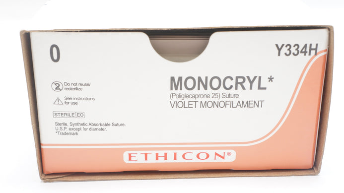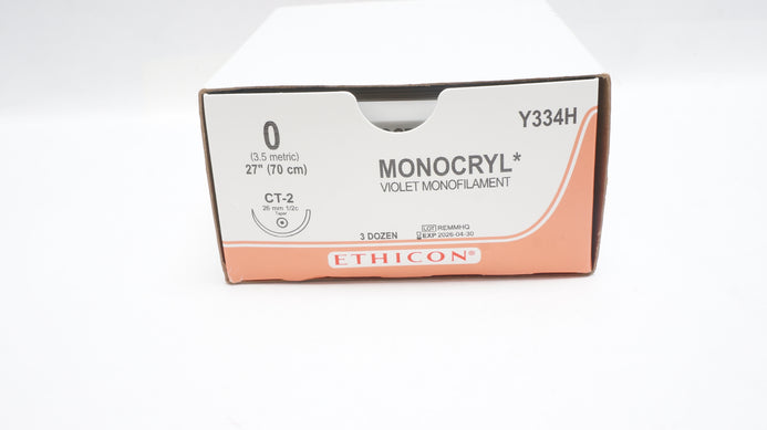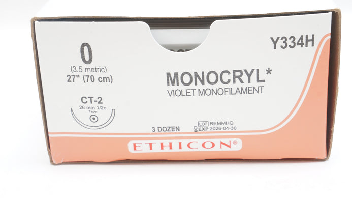 - Ethicon Y334H 0 MONOCRYL, CT-2, 26mm 1/2c Taper, 27inch - Box of 36