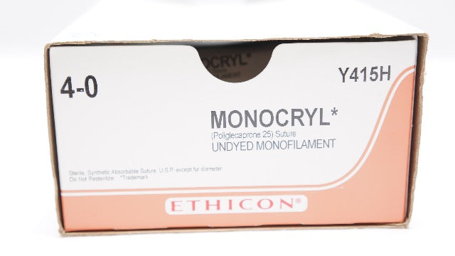 - Ethicon Y415H 4-0 MONOCRYL Undyed, SH, 26mm 1/2c Taper, 27inch - Box of 21 (x)