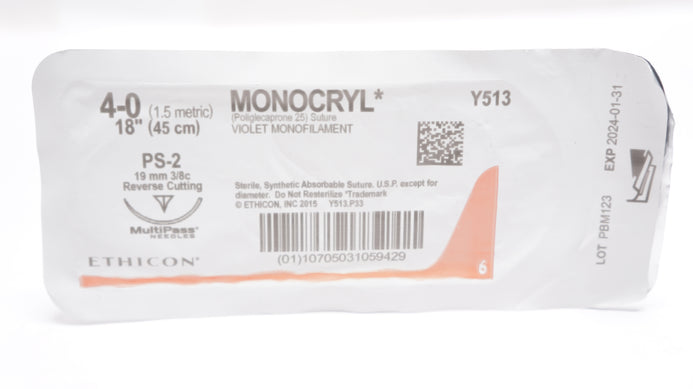 - Ethicon Y513 4-0 Monocryl 18inch PS-2 19mm 3/8c Reserve Cutting (x)