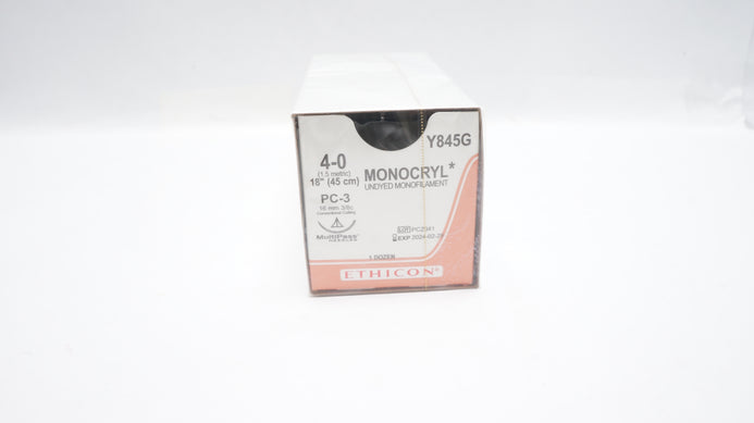 - Ethicon Y845G 4-0 MONOCRYL, PC-3, 16mm 3/8c, 18inch (x) - Box of 12