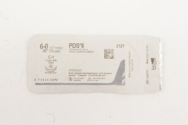 - Ethicon Z127 6-0 PDS II, C-1, 13mm 3/8c Taper, 30inch
