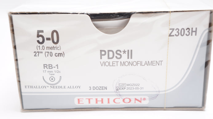 - Ethicon Z303H 5-0 PDS II Stre. RB-1 17mm 1/2c Taper 27In -Box of 36 (x)