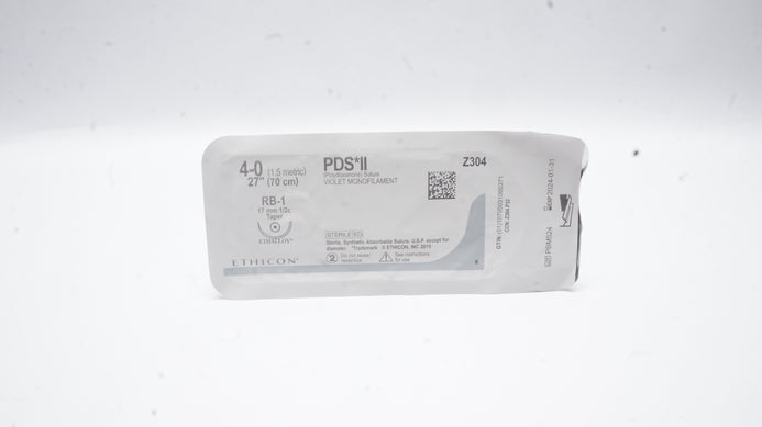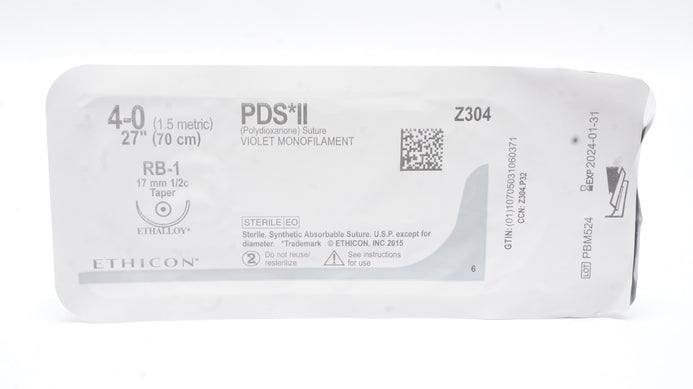 - Ethicon Z304 4-0 PDS II Polydioxanone Stre RB-1 17mm 1/2c Taper, 27inch (x)