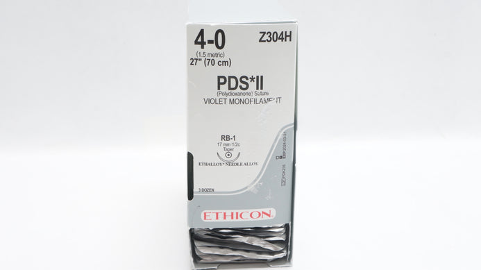 - Ethicon Z304H 4-0 PDS II Stre RB-1 17mm 1/2c Taper, 27inch (x) - Box of 36