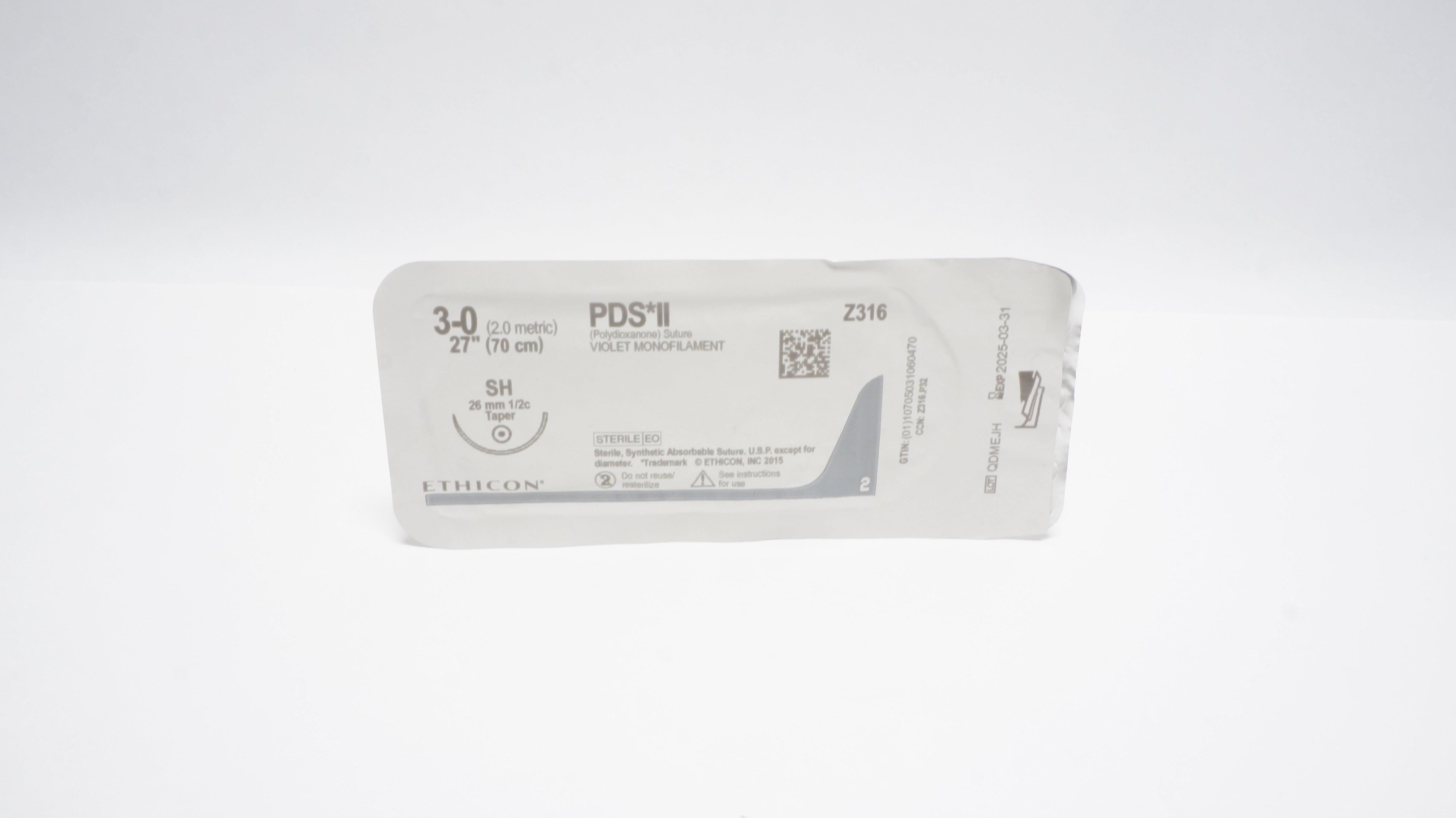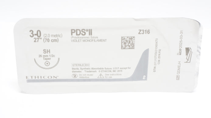 - Ethicon Z316 3-0 PDS II VIOLET MONOFILAMENT SH 26mm 1/2c Taper, 27inch (x)
