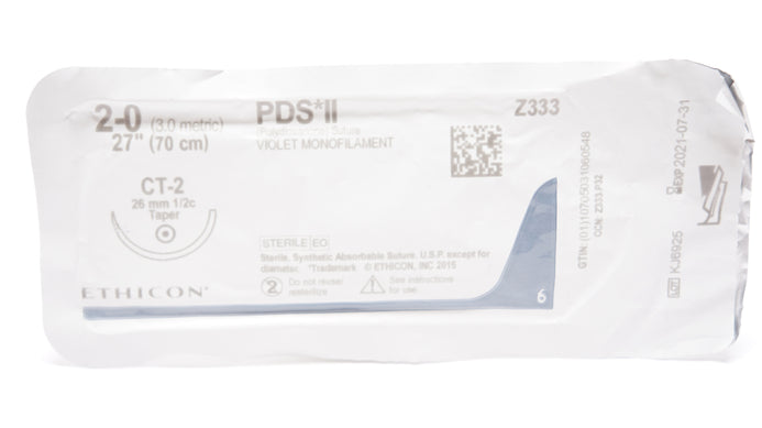 - Ethicon Z333 2-0 PDS II VIOLET MONOFILAMENT CT-2 26mm 1/2c Taper, 27in(x)