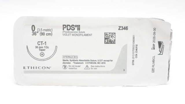 - Ethicon Z346 0 PDS II Violet Monofilament Stre CT-1 36mm 1/2c Taper, 36inch