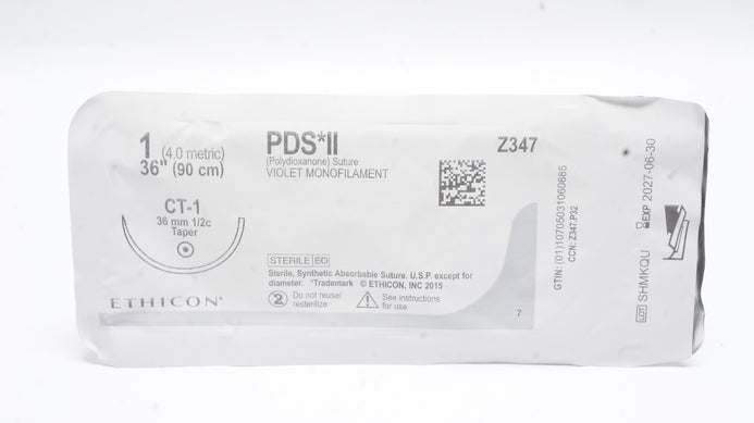 - Ethicon Z347 1 PDS II Polydioxanone Stre CT-1, 36mm 1/2c Taper, 36inch