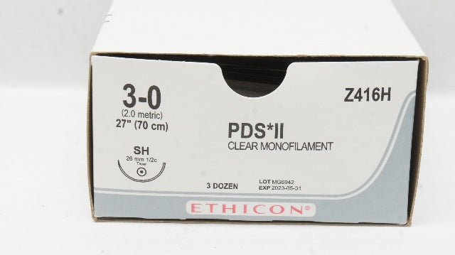 - Ethicon Z416H 3-0 PDS II Monofilament SH 26mm 1/2c Taper 27inch (x) - Box of 28