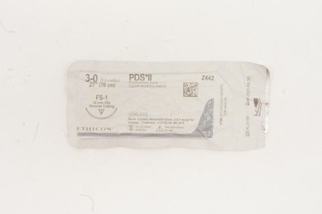- Ethicon Z442 3-0 PDS II, FS-1 24mm 3/8c Reverse Cutting Clear Monofilament, 27in