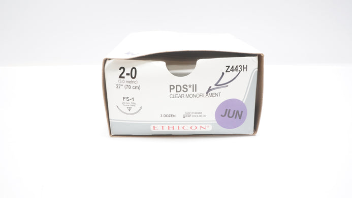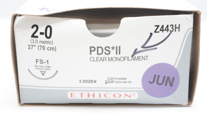 - Ethicon Z443H 2-0 PDS II Stre FS-1 24mm 3/8c Reverse Cutting, 27in-Box of 27 (x)