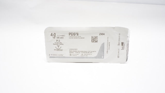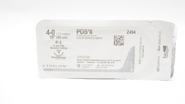 - Ethicon Z494 4-0 PDS II Polydioxanone Stre P-3 13mm 3/8c Reverse Cutting, 18inch
