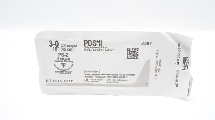 - Ethicon Z497 3-0 PDS II Polydioxanone Stre PS-2 19mm 3/8c Reverse Cutting 18inch