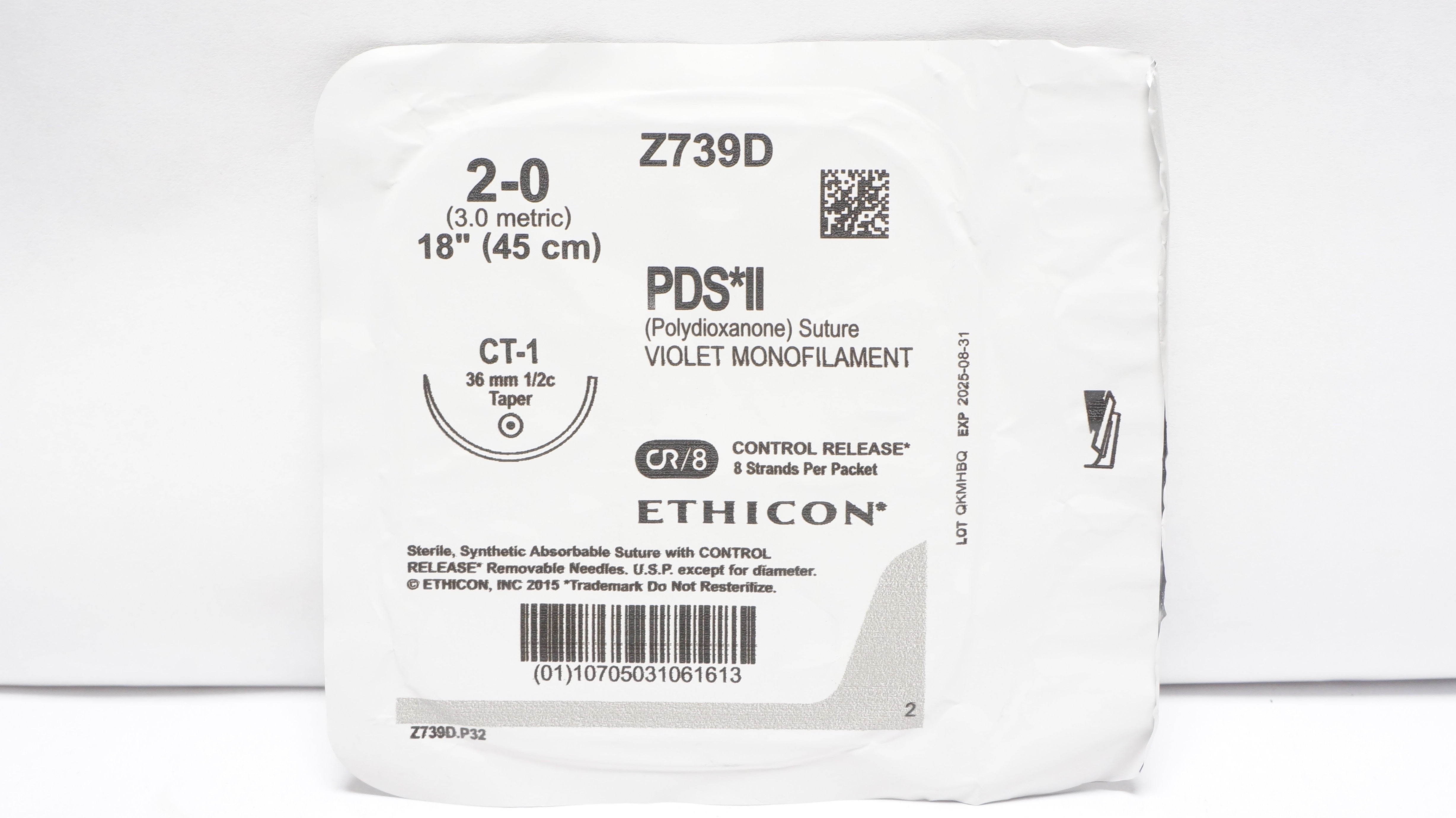 - Ethicon Z739D 2-0 PDS II Polydioxanone Stre CT-1 36mm 1/2c Taper 18 inch CR/8(x)