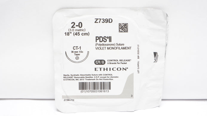 - Ethicon Z739D 2-0 PDS II Polydioxanone Stre CT-1 36mm 1/2c Taper 18 inch CR/8(x)