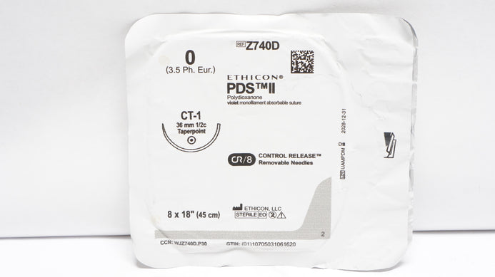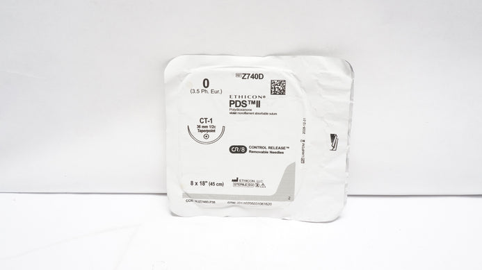 - Ethicon Z740D 0 PDS II Polydioxanone Stre CT-1 36mm 1/2c Taperpoint 8x18inch