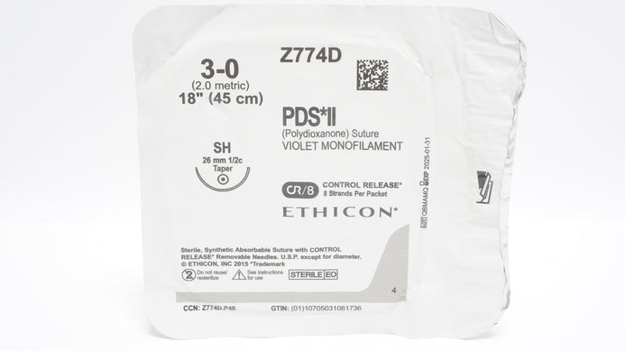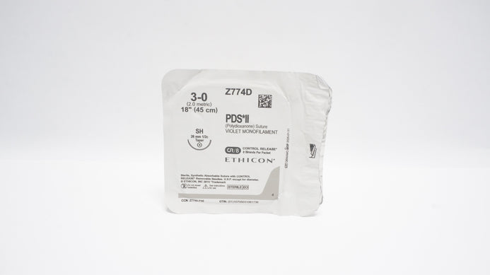- Ethicon Z774D 3-0 PDS II Polydioxanone Stre SH 26mm 1/2c Taper 18inch (x)