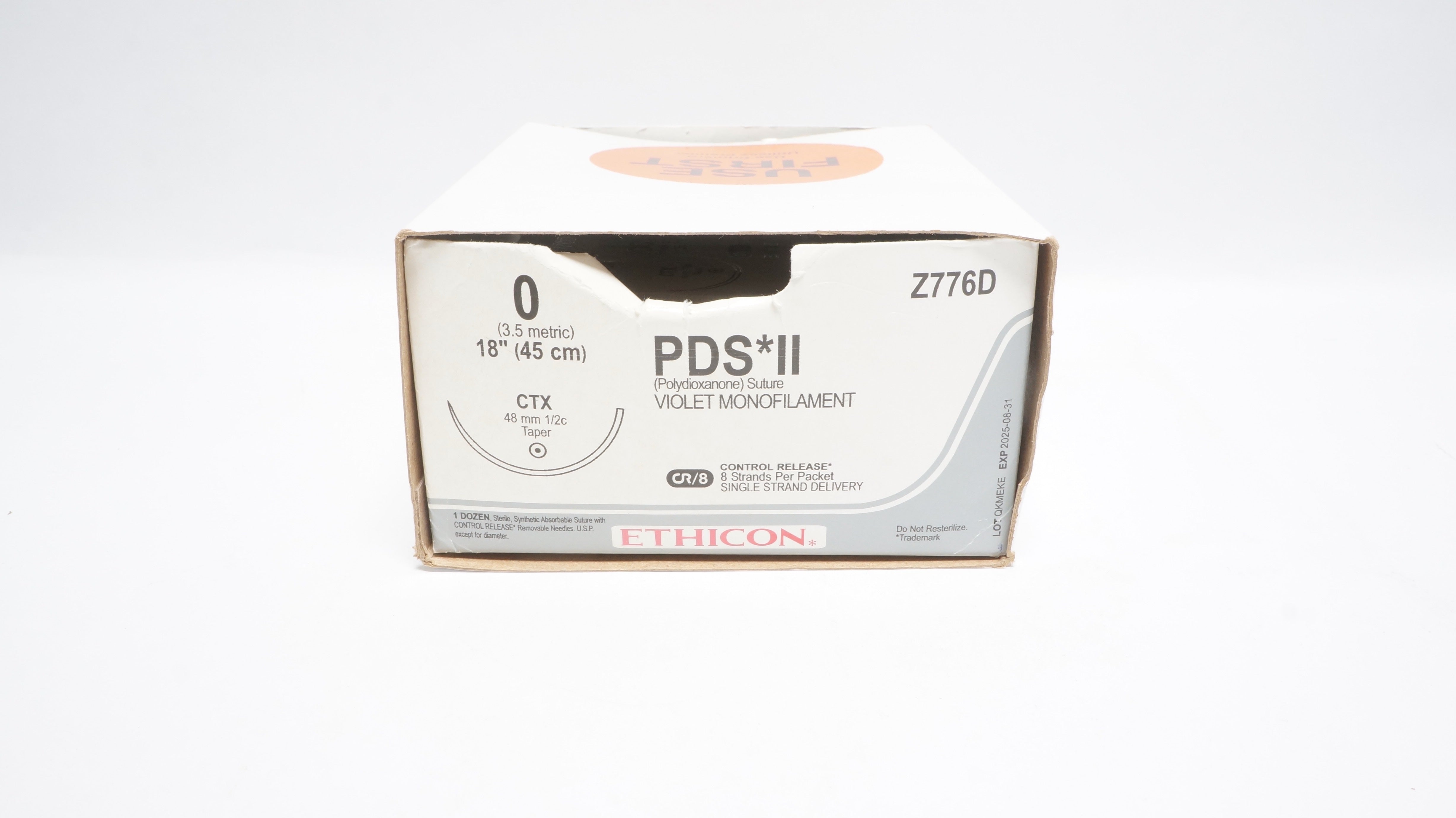 - Ethicon Z776D 0 PDS II Polydioxanone Stre CTX 48mm 1/2c Taper 18in.(x)-Box of 10