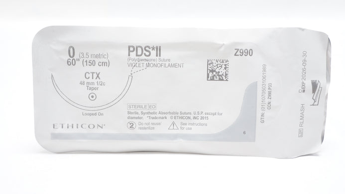 - Ethicon Z990 0 PDS II Violet Monofilament, CTX, 48mm 1/2c Taper, 60inch