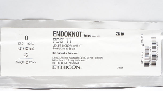 - Ethicon ZK10 0 Endoknot PDS II Stre ST-3 Taper, Straight 22mm, 42inch (x)