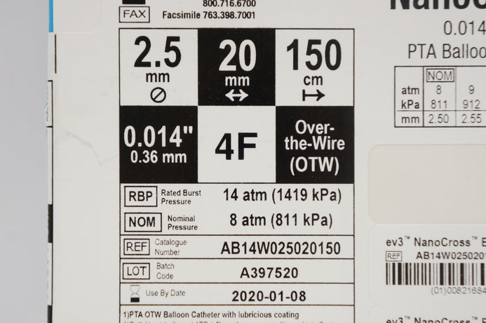 - EV3 AB14W025020150 NanoCross Elite PTA Ballon Dilatation Cath. 0.014 inch. (x)