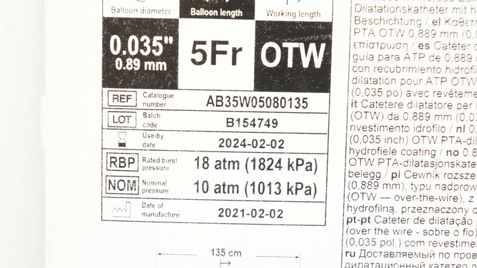 - EV3 AB35W05080135 EverCross OTW PTA Dilatation Cath.5Fr, 5mm x 80mm x 135cm (x)