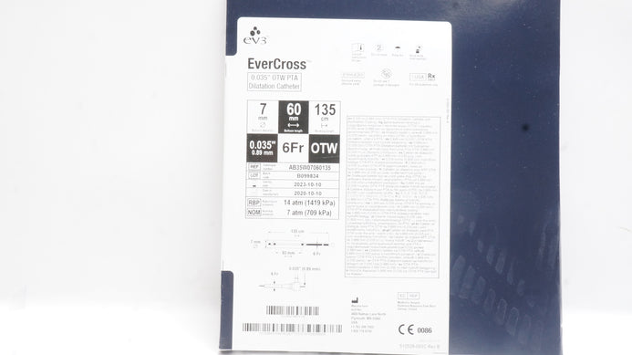 - EV3 AB35W07060135 EverCross OTW PTA Dilatation Cath.6Fr, 7mm x 60mm x 135cm (x)