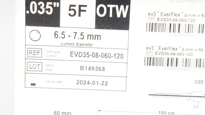 - EV3 EVD35-08-060-120 EverFlex Self-Expanding Peripheral Stent w/Entrust, 5F (x)