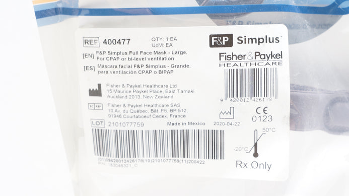 - Fisher & Paykel 400477 F&P Simplus Full Face Mask, Large